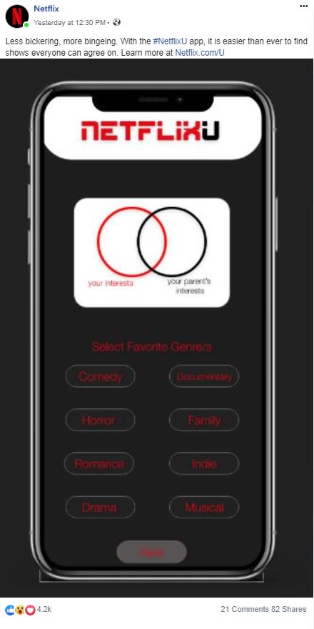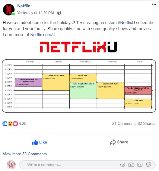Utilizing social media to show off the unique features of ‘Netflix U’.